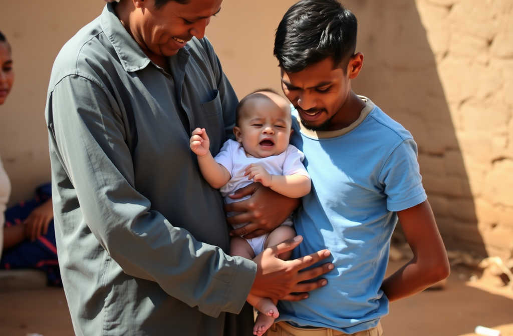 “Eles estão com muito calor,” constatou a Gabriela, começando a desenrolar as mantas grossas com movimentos rápidos e precisos. “Num dia de trinta graus, o senhor enrolou-os como se fosse Inverno. E a fralda do Ravi está encharcada. Ele deve estar assado e com dores.” Ela verificou a temperatura da pele dos bebés com as costas da mão, um gesto automático que revelava experiência. O Jairo encostou-se à pilastra de madeira, a observar a cena com os olhos marejados, sentindo-se completamente inútil.