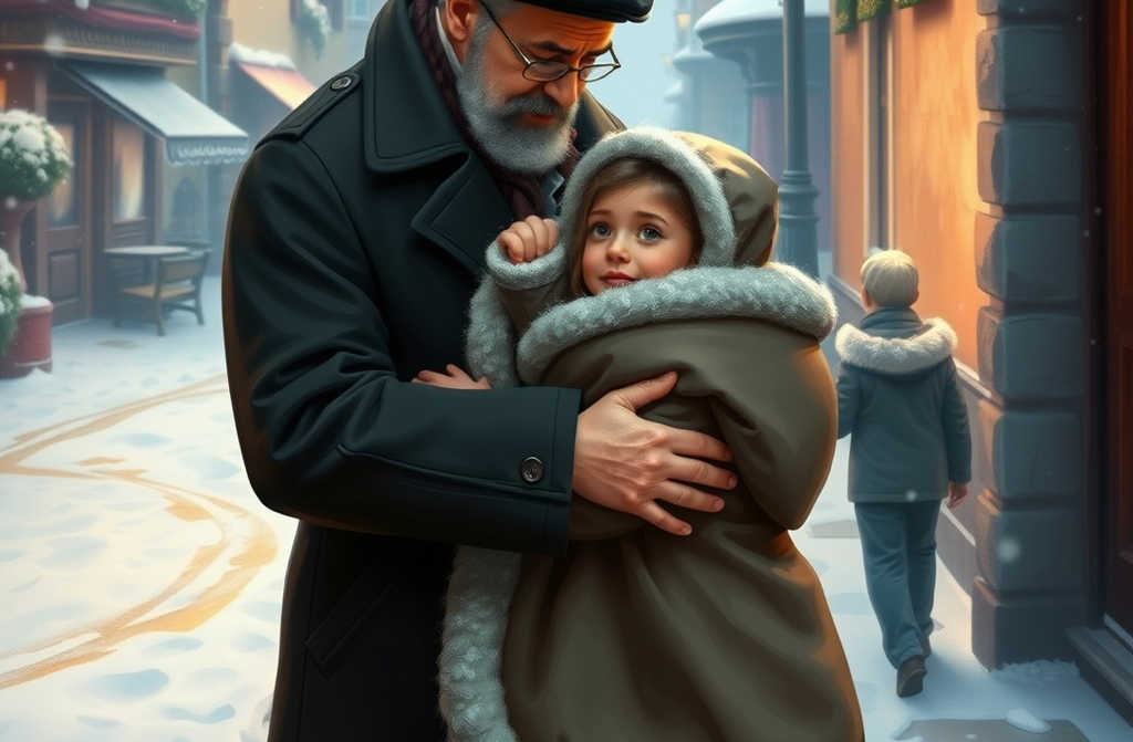 “Pequenina, o que fazes aqui sozinha?” perguntou Joaquim, tirando rapidamente o casaco e envolvendo-a com ele.