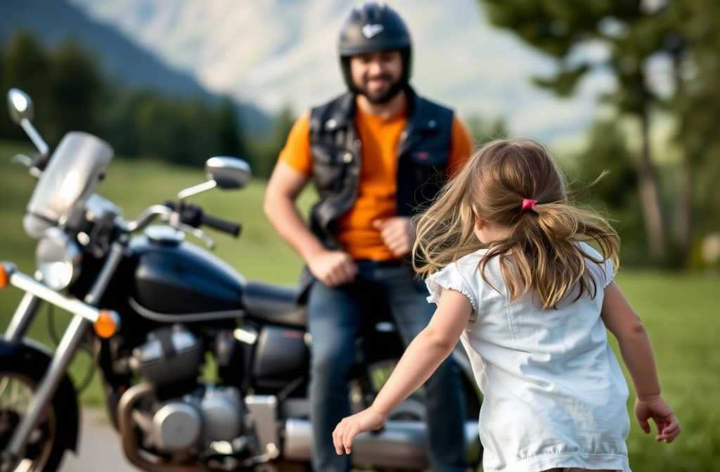 Fiquei paralisado, assistindo à cena. O motociclista — facilmente com 1,95m e 120kg, braços grossos como troncos — conversava em silêncio com aquela criança minúscula.