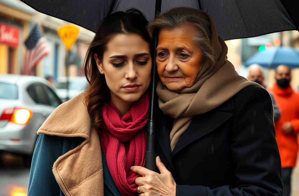 Una voz frágil rompió el silencio. «Niña, pareces un fantasma abandonado bajo la lluvia».
