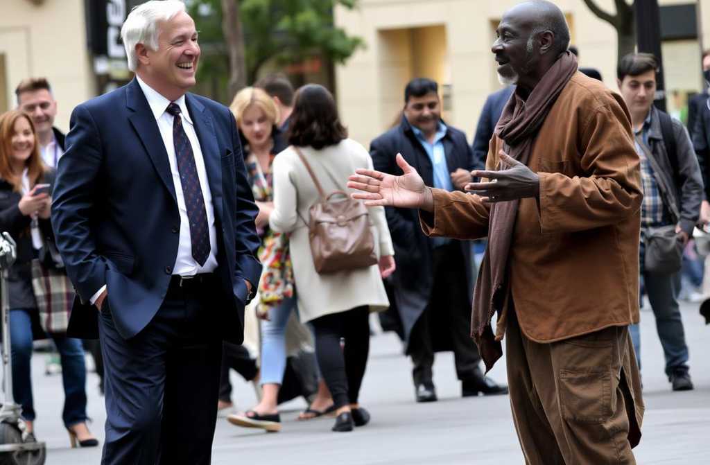 Sua arrogância era tão visível quanto seu relógio Patek Philippe que brilhava no pulso. Quando seus olhos pousaram numa figura que destoava completamente do ambiente luxuoso, viu um homem de cerca de 60 anos, cabelos grisalhos desalinhados, roupas gastas segurando um cartaz: “Qualquer ajuda é bem-vinda. Deus abençoe.”
