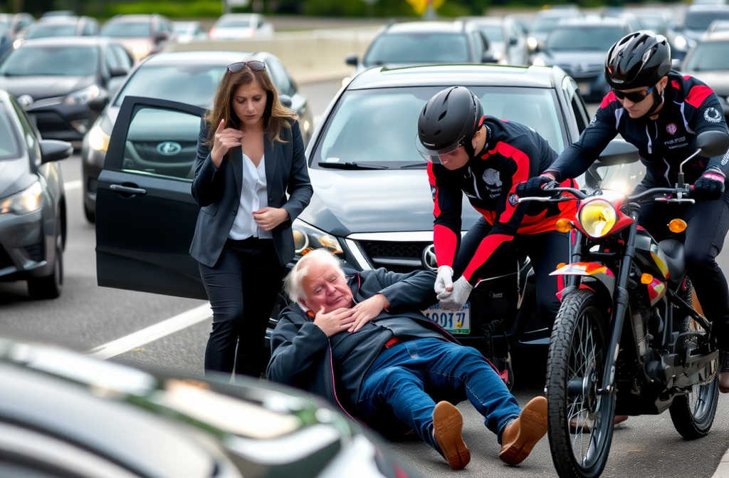 Un motorista con parches médicos en el chaleco buscaba el pulso. “Nada. Seguid con las compresiones.” Otro hablaba por teléfono con emergencias: “¡Necesitamos esa ambulancia YA! Veterano de guerra, unos setenta años, paro cardiaco en la A-6, kilómetro 47.”