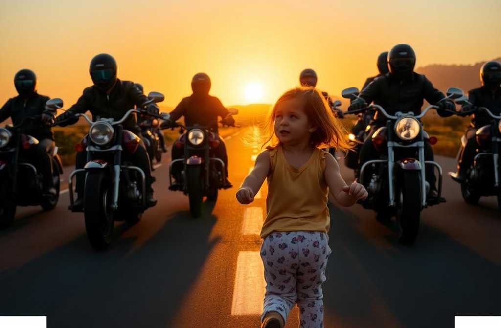 Estávamos a voltar de uma homenagem de mota quando uma menina de pijama surgiu a correr do meio do bosque. Os pés ensanguentados, agitava os braços desesperadamente para a fila de motociclistas—como se fôssemos a sua última esperança na terra.