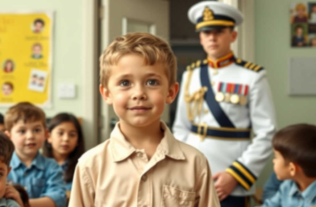 Los alumnos formaban fila tras el recreo, todavía hablando, cuando el pasillo quedó en silencio. Unos pasos firmes y pesados resonaron hacia el aula. Todas las cabezas se giraron al ver entrar a un hombre alto con uniforme militar lleno de condecoraciones. Las medallas brillaban bajo la luz. Su postura transmitía autoridad.