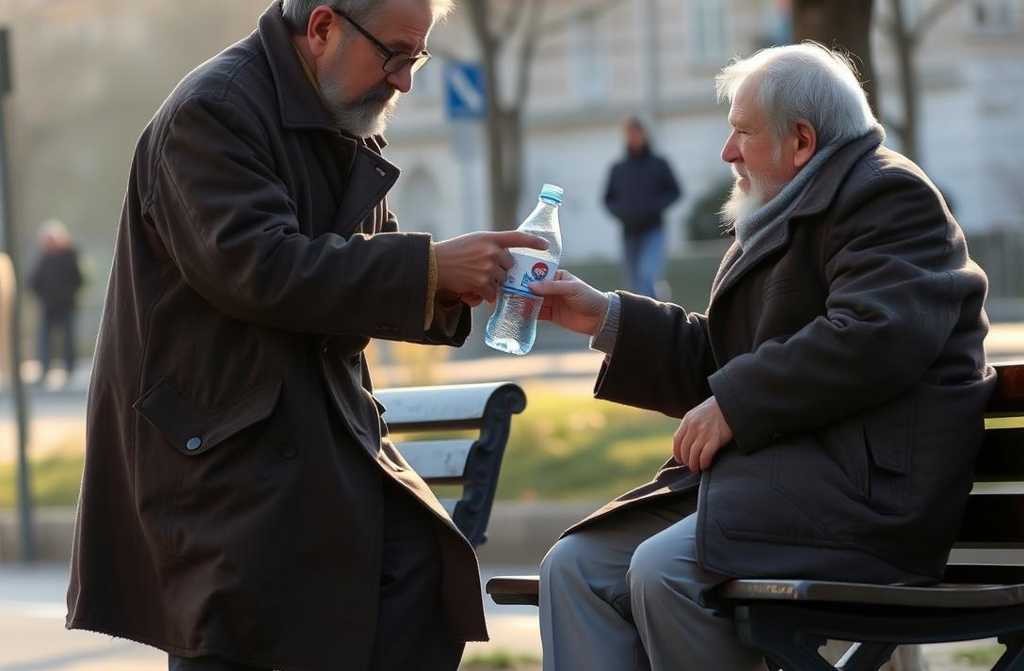 O homem olhou para mim como se lhe tivesse dado um tesouro. Os olhos encheram-se de lágrimas ao segurar a garrafa.