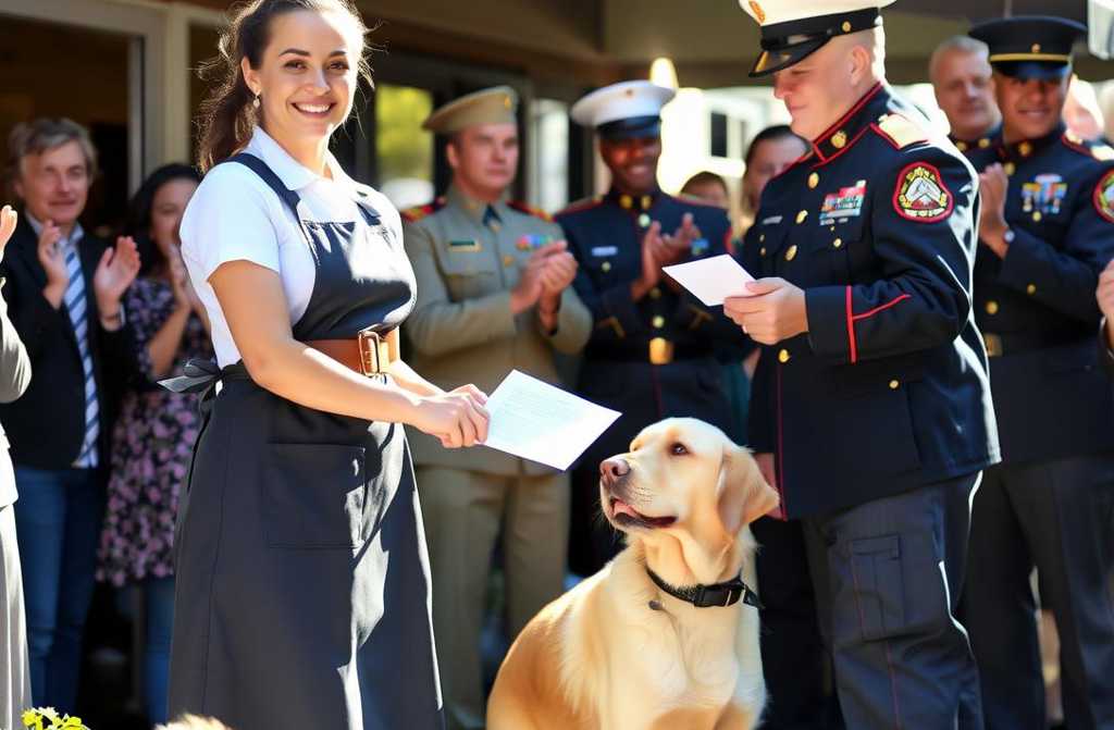 Entregaram-lhe um envelope com uma carta de agradecimento do comandante e um convite para um evento em apoio a veteranos e seus animais.