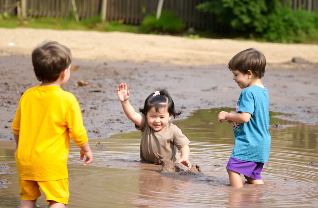 Sus tres hijos estaban empapados de barro, chapoteando en un gran charco que había engullido parte de su impecable césped. El agua salpicaba los setones recortados y los caminos de piedra.
