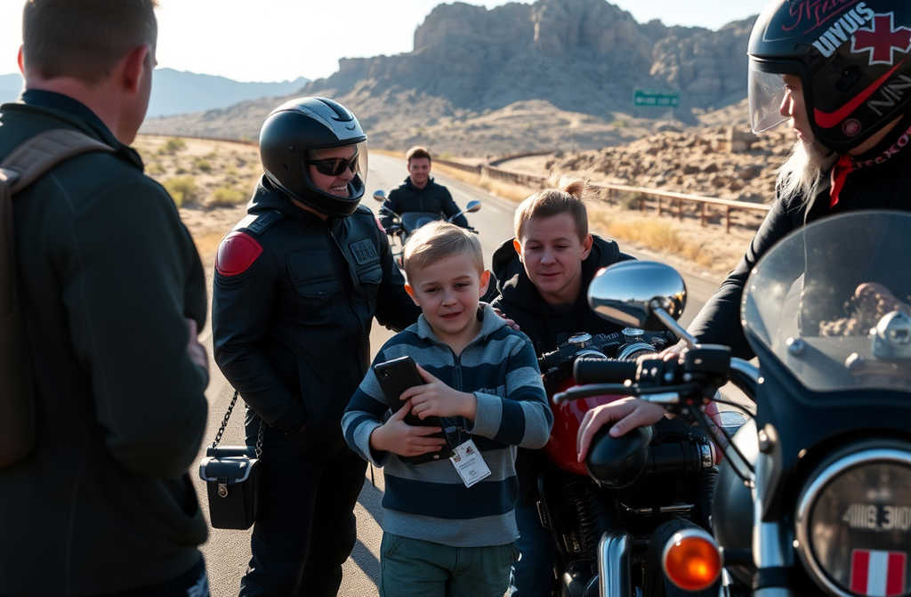 Los motoristas se quedaron quietos. Eran hombres grandes, intimidantes, cuya presencia solía hacer que la gente apartara la vista. Pero el niño no dudó. Corrió directamente hacia el más grande de todos.