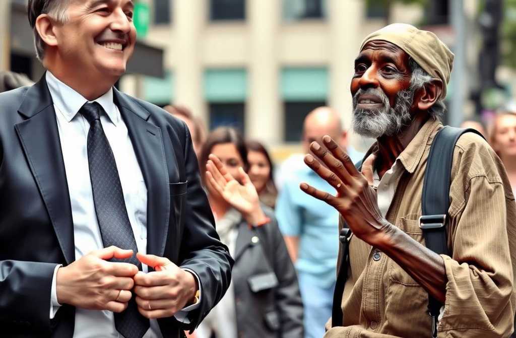Su arrogancia era tan visible como su reloj de la firma suiza que centelleaba bajo su puño de camisa. Mientras discutía detalles de su última adquisición, sus ojos se posaron en un hombre sentado a la entrada de un edificio corporativo. Era un hombre de unos 60 años, pelo canoso, ropa gastada y un cartel de cartón que rezaba: “Cualquier ayuda será agradecida. Que Dios le bendiga”.