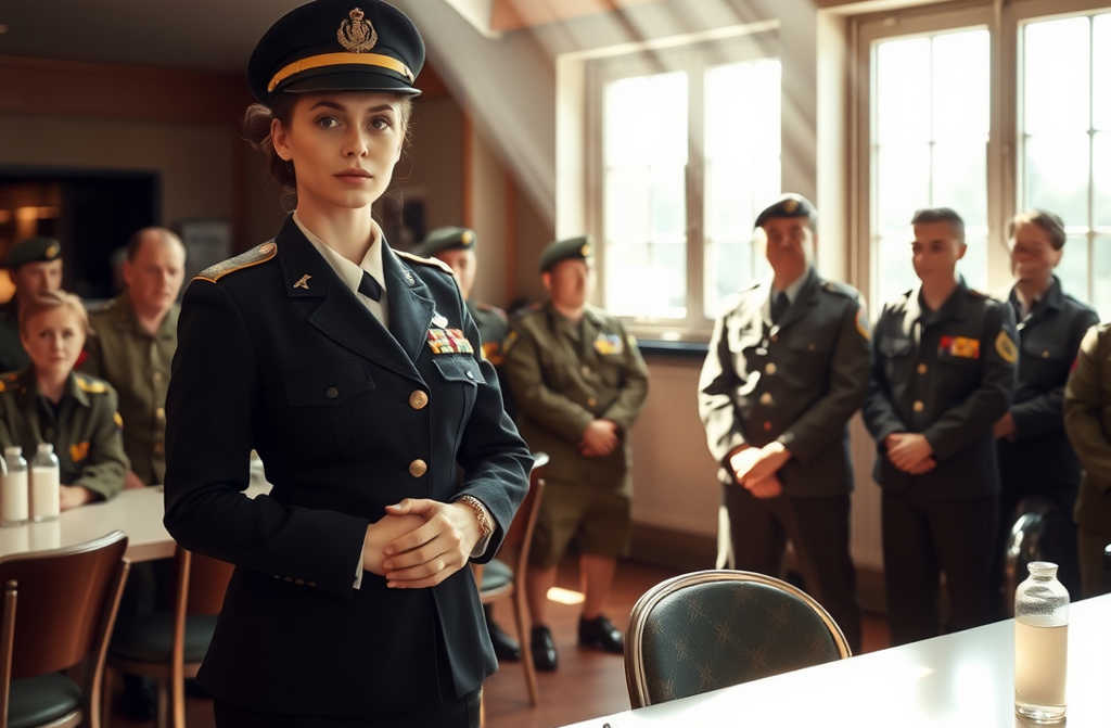 «Mira el tablón de anuncios», señaló Lucía hacia el listado de guardias tras él. «Firmado y sellado esta mañana. Puedes llamarme Comandante, señora… o simplemente callarte y escuchar. Pero la próxima vez que entre, saludarás».