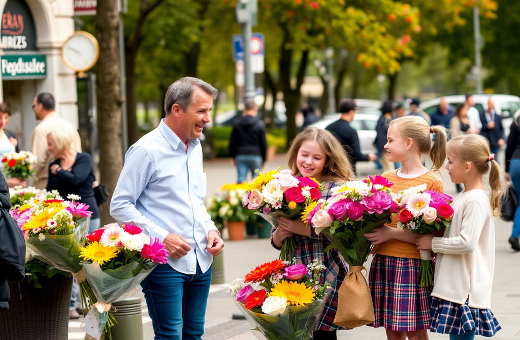 Cuatro niñas idénticas, apiñadas en una esquina, colocaban ramos hechos a mano en cubos de plástico. Llevaban chaquetas desiguales, claramente de segunda mano, y guantes sin dedos que dejaban ver sus manos enrojecidas por el frío. Un cartel apoyado en un cubo decía: “Flores por esperanza. 1 euro.”