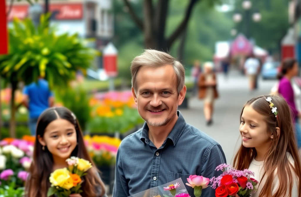 Cuatro niñas idénticas, acurrucadas en una esquina, colocaban ramos artesanales en cubos de plástico. Vestían chaquetas desiguales, claramente de segunda mano, y guantes sin dedos que dejaban ver sus manos enrojecidas por el frío. Un cartel apoyado en uno de los cubos decía: “Flores por esperanza. 1 euro.”