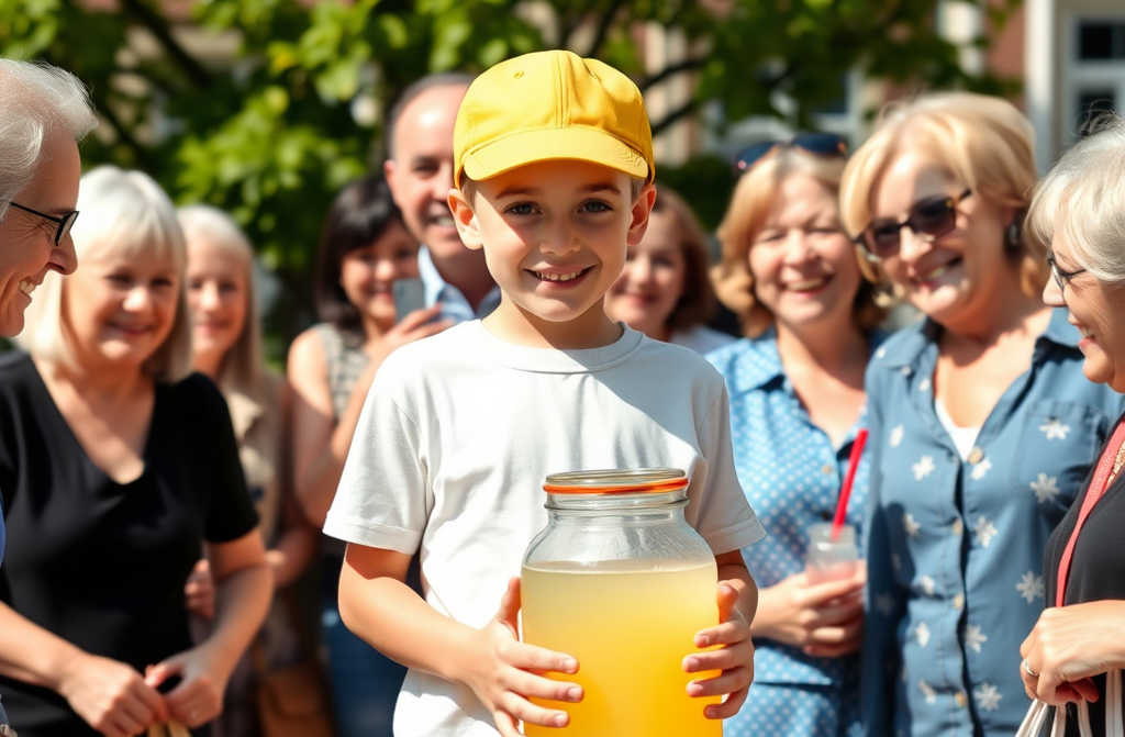 Diego, un niño de siete años, llevaba tres horas sentado tras su mesita plegable sin un solo cliente. Su cabeza rapada cubierta con una gorra amarilla, sus manos delgadas temblaban mientras reorganizaba los vasos una y otra vez.