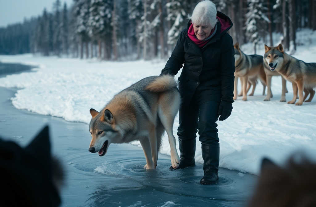 El lobo al principio enseñó los dientes, pero no le quedaban fuerzas para la rabia. Agarró la rama con sus patas delanteras. La mujer tiró. Le temblaban los brazos, le dolía la espalda, pero no soltó. El hielo crujió de nuevo, el agua salpicó el borde y, por fin, el cuerpo pesado del lobo quedó sobre la superficie.