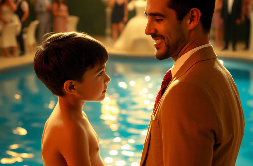 En el porche de la mansión en Sierra Serena, la piscina relucía como un escaparate. Risotadas, copas en alto, música excesiva. Y, en medio de aquel teatro, Livia entró con su hijo, David, agarrando su mano con fuerza.