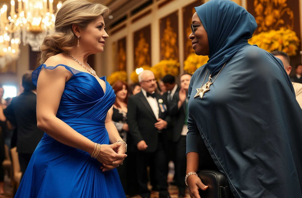 O salão estava deslumbrante, iluminado por candelabros de cristal e decorado com flores brancas e douradas. Era uma noite de gala, repleta de convidados importantes e jornalistas atentos a cada detalhe. No centro, a bilionária Maria Sofia desfilava com elegância, vestida num longo azul que realçava sua postura nobre. À sua volta, risos, brindes e aplausos. Tudo parecia perfeito até que algo interrompeu sua serenidade. Entre os funcionários que serviam champanhe e canapés, uma mulher simples, de uniforme preto e avental branco, chamou sua atenção.