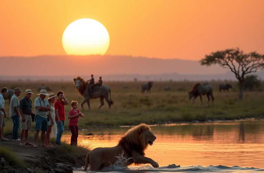 Os turistas voltavam para o acampamento depois de um longo dia de observação da vida selvagem, quando um deles reparou num movimento estranho perto do rio.