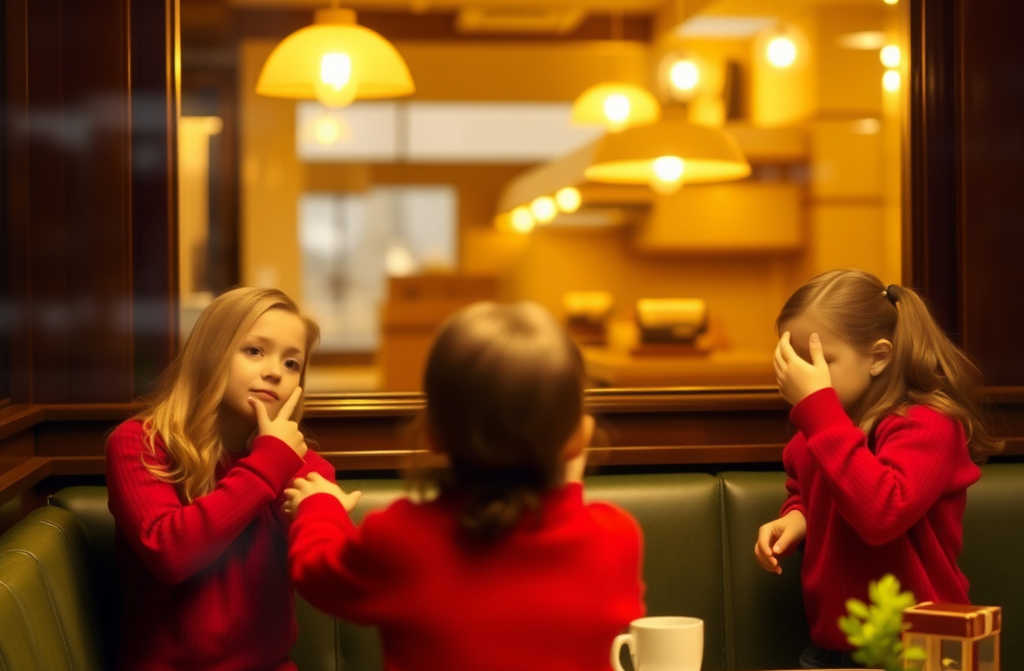 Alcé la vista, esperando saludar a un hombre con chaqueta. En su lugar, vi a tres niñas idénticas de pie junto a mi mesa. Jerséis rojos a juego. Rizos rubios. Expresiones demasiado serias para niñas de cinco años.