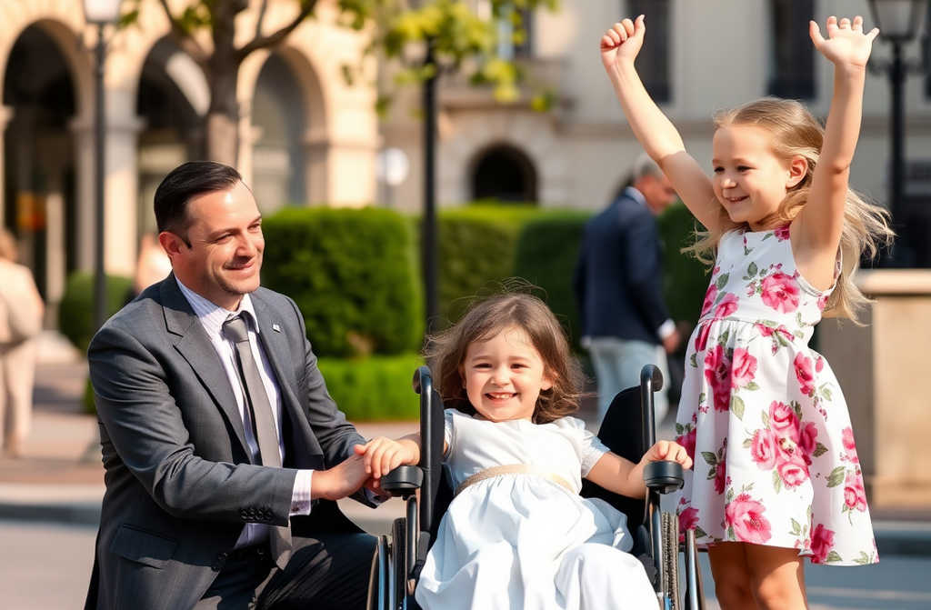 Un hombre adinerado, vestido con elegancia impecable, caminaba a paso rápido por la plaza Mayor de Madrid. Su rostro mostraba severidad y cálculo. De pronto, se detuvo. Algo hizo hervir su sangre. Una niña con ropa remendada y sucia hablaba con su hija, la pequeña Sofía, que estaba en el suelo frente a su silla de ruedas.