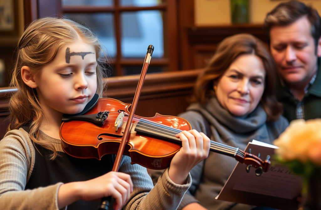 La pequeña inspiró hondo… alzó el violín… y comenzó a interpretar.