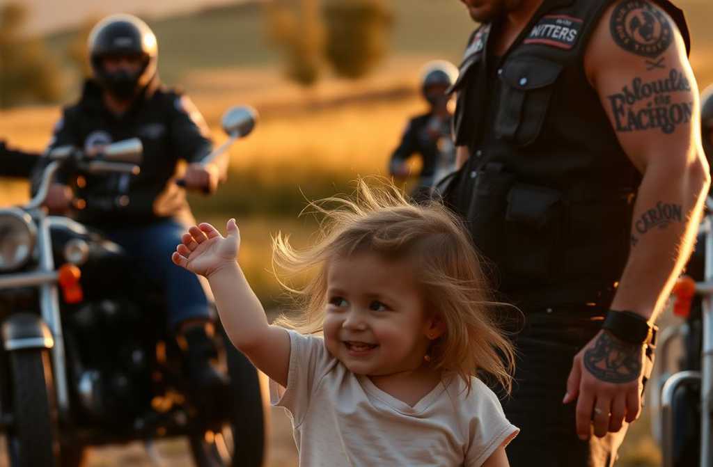 Entonces, la expresión del motero pasó de la preocupación a una rabia pura. Se levantó, escaneando el local con una mirada que prometía violencia, sin soltar a la niña, que seguía pegada a su pecho.
