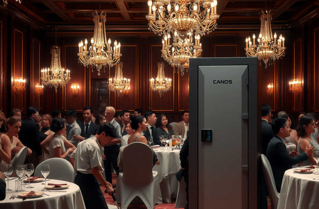 Dos hombres empujaron un objeto de acero hacia el escenario. Era elegante, industrial, fuera de lugar entre la seda y el cristal. Una caja fuerte de máxima seguridad, negra mate, sin panel visible—solo un lector biométrico y una cerradura reforzada.