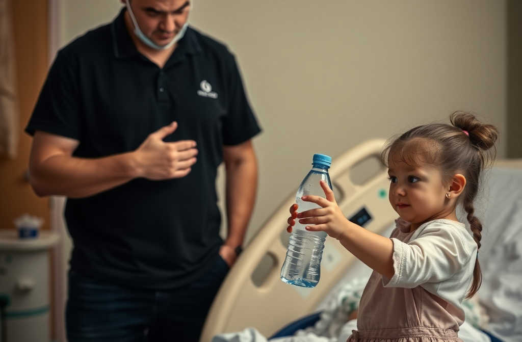 Se acercó directaCaminó hacia la cama de Pedrito con determinación, abrió el botellín y murmuró: “El agua de la fuente de la abuela lo cura todo”.