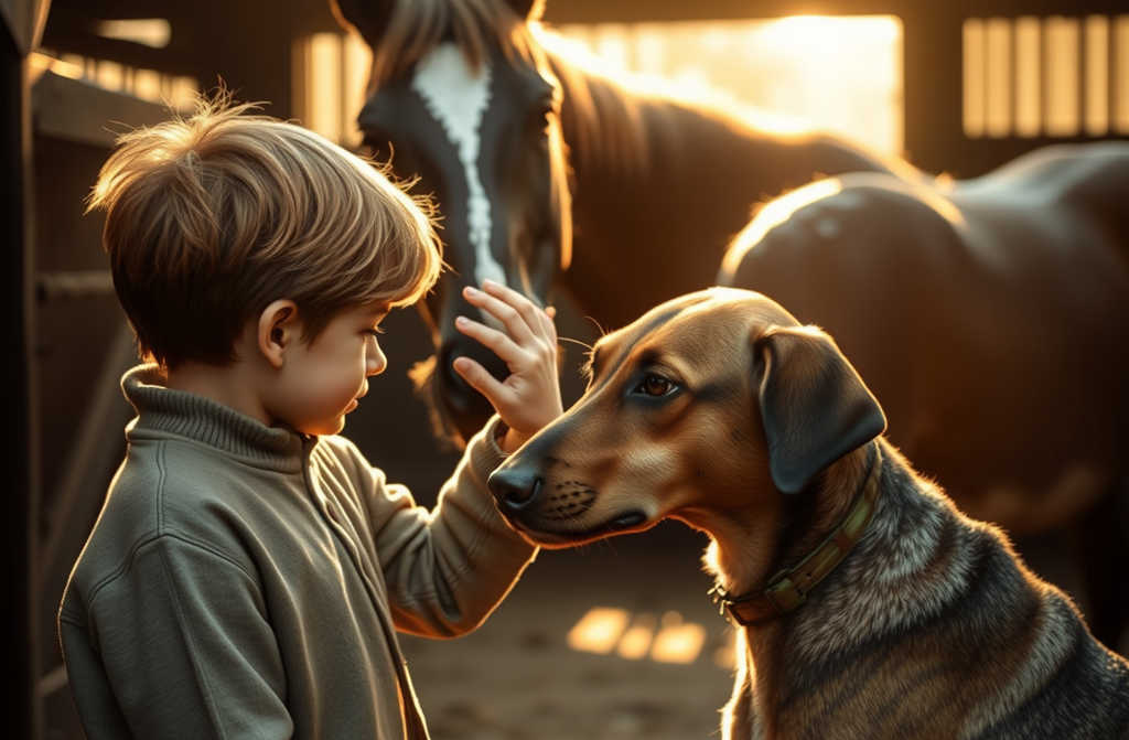 **Iker tenía cinco años.** Solo cinco. Y ya conocía el peso de una casa donde no se puede respirar fuerte. Aquella tarde, en el establo, mientras la yegua vieja golpeaba el suelo con sus cascos, una sombra oscura observaba desde el portón. Un perro. Ojos negros, quietos, que habían visto demasiado y estaban listos para volver a la batalla.