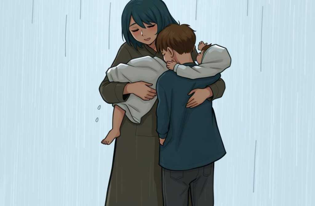 Llevaba media hora recorriendo las calles tras la llamada desesperada del colegio. Su hijo se había escapado otra vez. Pero lo que veía lo dejó helado. Una mujer joven, de ropa humilde y desgastada, consolaba a Adrián como si fuera su propio hijo. Llevaba un bebé que apenas tendría seis meses y, aún así, había dado su única protección contra la lluvia a un niño que no conocía.
