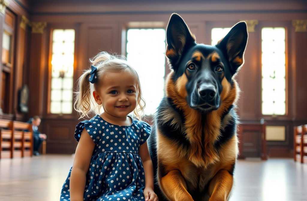 Atrás dela, ouvia-se o som suave de patas no chão de linóleo: Sombra. O tribunal exalou um suspiro coletivo quando o pastor-alemão entrou na sala. Calmo e majestoso, os olhos castanhos percorreram o espaço—alertas mas relaxados—com o colete de terapia da polícia bem ajustado ao peito. Sombra tinha sido treinado para confortar vítimas jovens durante depoimentos, mas ninguém sabia o quão crucial o seu papel seria.
