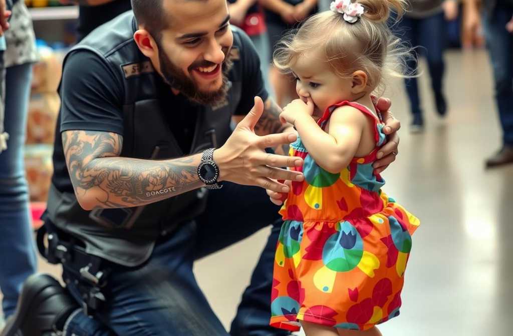 Uma menina, não mais do que seis anos, correu desesperada pelo supermercado. Lágrimas escorriam pelo seu rosto, e suas mãozinhas se moviam rapidamente em linguagem gestual. Ela correu direto para os braços do homem mais intimidador à vista — um motociclista gigante, com um colete de couro adornado de patches, tatuagens serpenteando por seus braços.
