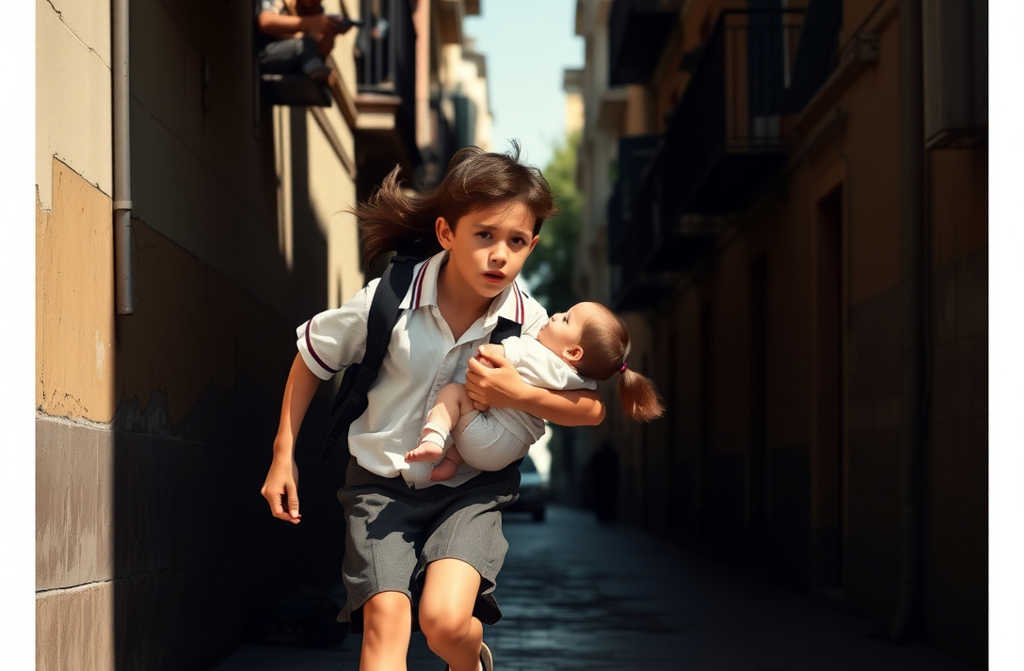 Cada passo queimava-lhe os pés, o uniforme colava-se ao corpo suado, e as mãos latejavam com os cortes. O bebé pesava mais do que imaginara, e, ao fim da terceira rua, faltava-lhe o ar dolorosamente. Mas não parou.