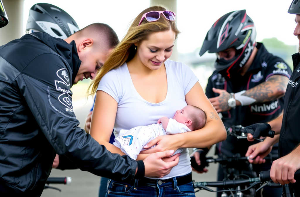 Cinco hombres enormes, con chalecos de cuero, rodearon la caja de cartón donde llevaba viviendo tres semanas. Cuando vieron a mi hija de dos meses envuelta en mi chaqueta sucia, el más grande de ellos empezó a llorar.