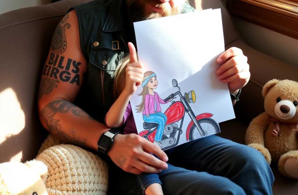 Às vezes fazíamos coisas grandes—levava-a para fora, sentava-a na minha moto parada, deixava-a fingir que conduzia. Outras vezes eram coisas pequenas—víamos desenhos animados, coloríamos, brincávamos com as bonecas.