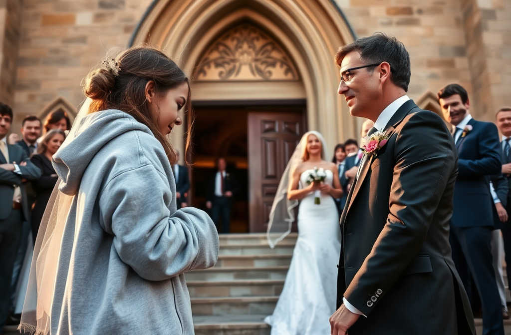 Atrás dele, uma carrinha com vidros fumados e um ramo de flores que custava mais que o aluguer de um mês de qualquer um dos que assistiam do passeio. O ar cheirava a incenso e perfume caro. E, no meio daquilo tudo, como uma mancha incómoda na cena perfeita, estava ela – uma menina magra, cabelo despenteado, um casaco demasiado grande e sapatos gastos.