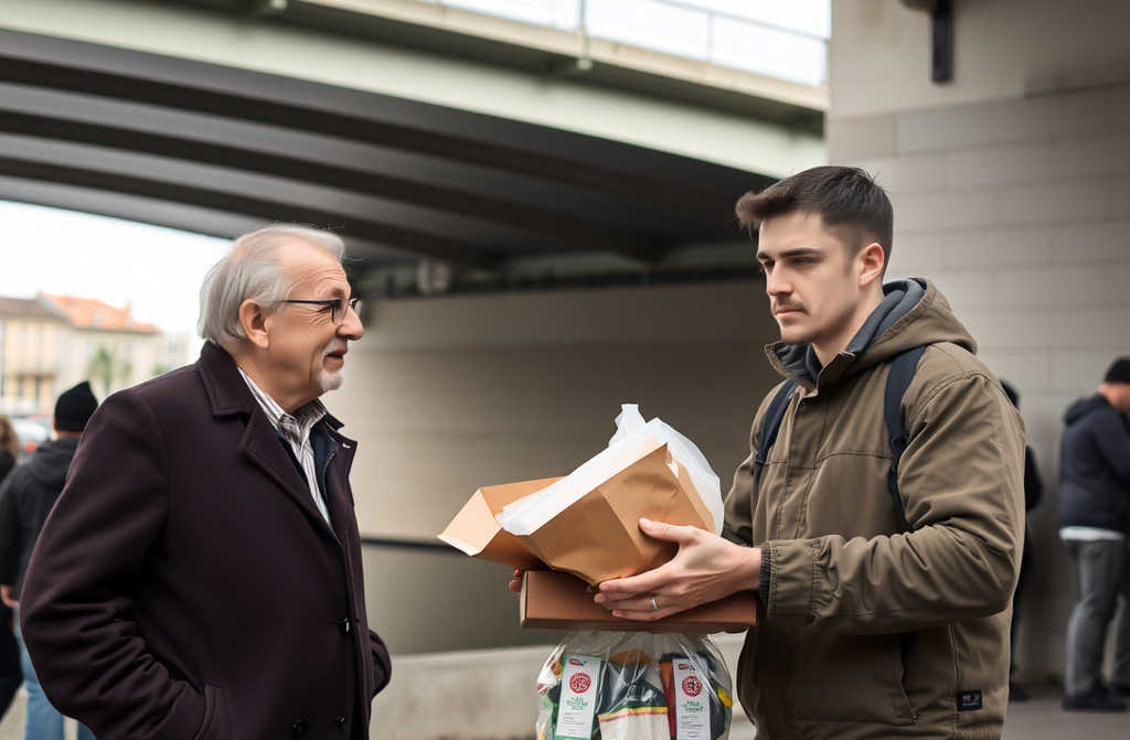 Numa tarde qualquer, o Artur teve uma reunião cancelada e não sabia o que fazer com o tempo. Espreitou pela janela e viu o Rodrigo a sair de casa com a mochila. Algo nele despertou-lhe o interesse. Não soube porquê, mas desceu à garagem, entrou no seu jipe e começou a segui-lo. Manteve a distância. Viu que o Rodrigo caminhava calmamente, sem olhar para trás. Seguia pelo passeio com passo seguro, como alguém que sabe muito bem para onde vai. Dobrou numa esquina, atravessou uma avenida e entrou numa zona mais degradada da cidade. O Artur abrandou, seguiu-o até o jovem parar debaixo de um viaduto. [música] Havia umas seis pessoas sentadas no chão, com cobertores, sacos de plástico e garrafas de água. O que se seguiu deixou-o sem palavras. O Rodrigo tirou da mochila os cinco tupperwares, um a um, e foi entregando-os àquelas pessoas. Não era uma entrega qualquer. Agachava-se, olhava-os nos olhos, perguntava-lhes como estavam. Um dos homens levantou-se e deu-lhe um abraço. Uma mulher acariciou-lhe a face. Um rapaz, mais ou menos da sua idade, ofereceu-lhe o seu único refrigerante. O Rodrigo sorria. Notava-se que não era a primeira vez que o fazia. O Artur ficou a observar do seu jipe. Nunca tinha visto algo assim tão de perto. Não era um ato de caridade, era outra coisa. [música] Havia respeito, havia familiaridade, havia afeto. O Rodrigo não procurava aplausos, não levava telemóvel, não gravava nada, estava apenas ali, como parte do seu dia. [música]