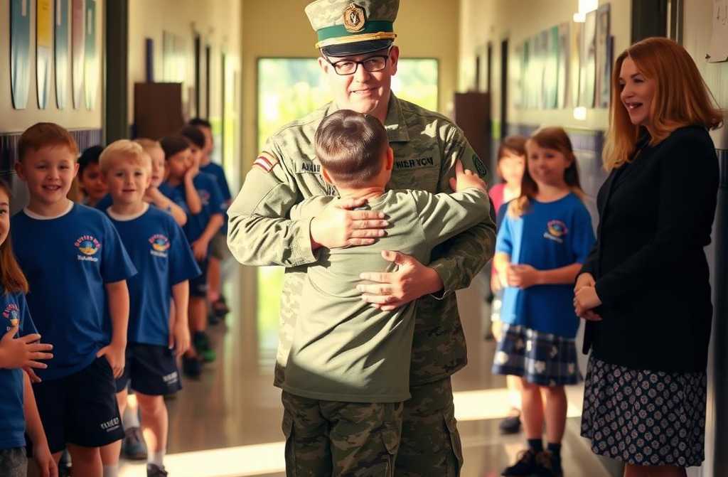 Apenas dez minutos depois, enquanto os alunos faziam fila após o recreio, um homem alto e de ombros largos, vestido com o uniforme completo do Exército Português, entrou na escola. A sua presença sozinha captou todas as atenções. As professoras pararam no meio das conversas. Os alunos olharam com os olhos arregalados. As insígnias e medalhas no seu uniforme brilhavam sob as luzes do corredor.