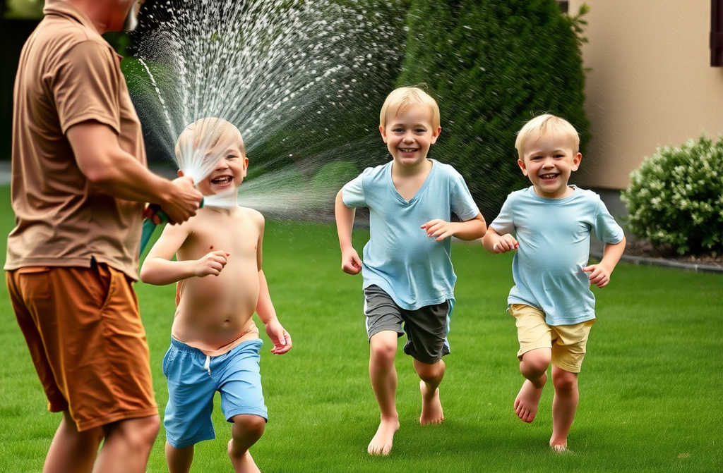 Mas agora, naquele preciso instante, enquanto segurava a pasta de cabedal com as mãos suadas e o corpo dorido de cansaço, os seus quatro filhos corriam em círculos no jardim, completamente ensopados, com as t-shirts coladas ao corpo, o cabelo a pingar, os pés descalços a enterrar-se na relva molhada, e riam-se — riam a valer, com aquele som agudo e solto que só as crianças felizes sabem fazer.