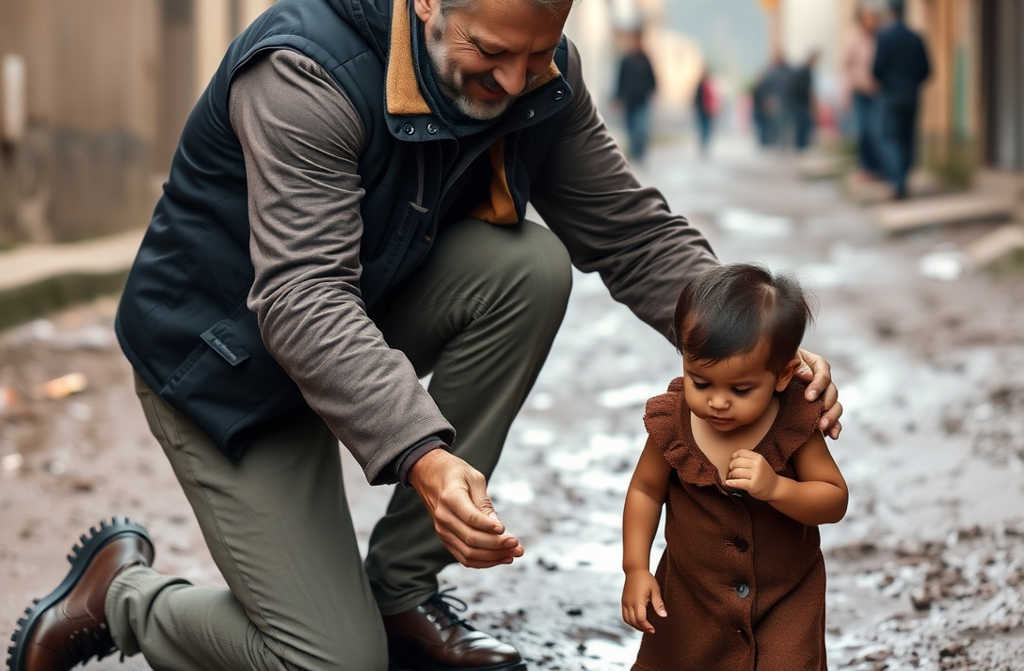 Um milionário de joelhos frente a duas crianças abandonadas não passou despercebido.