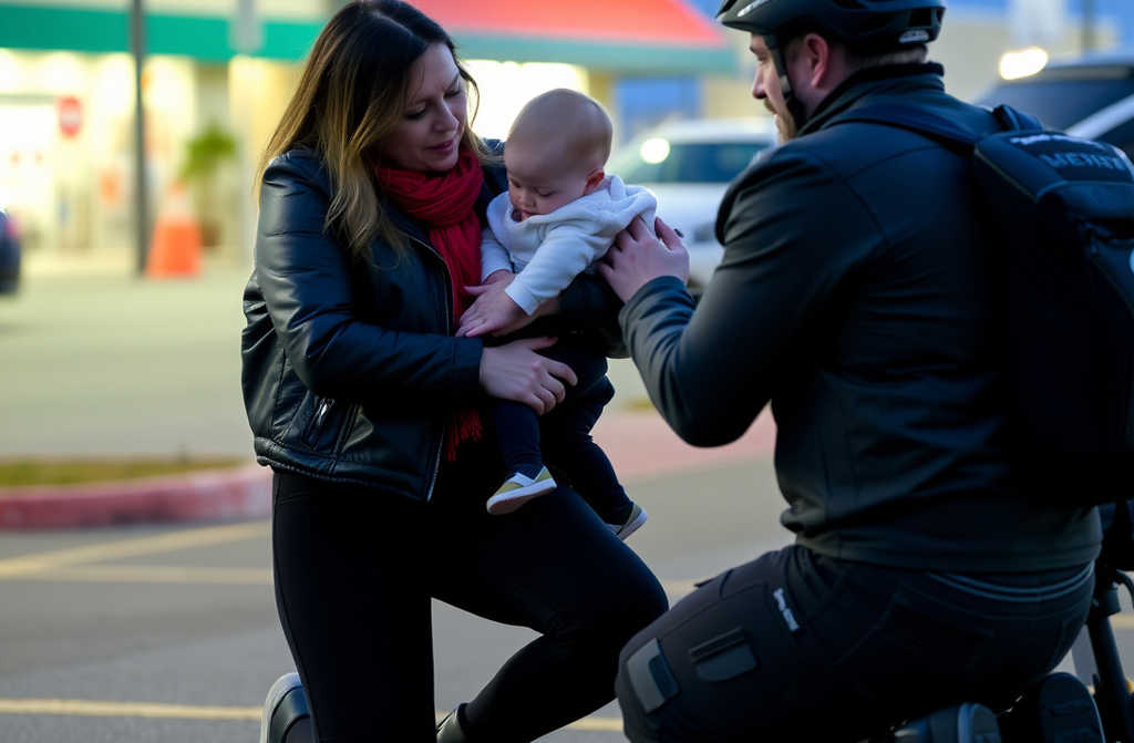 O motociclista segurou a minha bebé abandonada e recusou-se a devolvê-la. Observei do outro lado do estacionamento enquanto aquele homem imponente, cheio de tatuagens e com um colete de couro, segurava a minha filha de quinze meses contra o peito. Ela ria e puxava a barba dele.