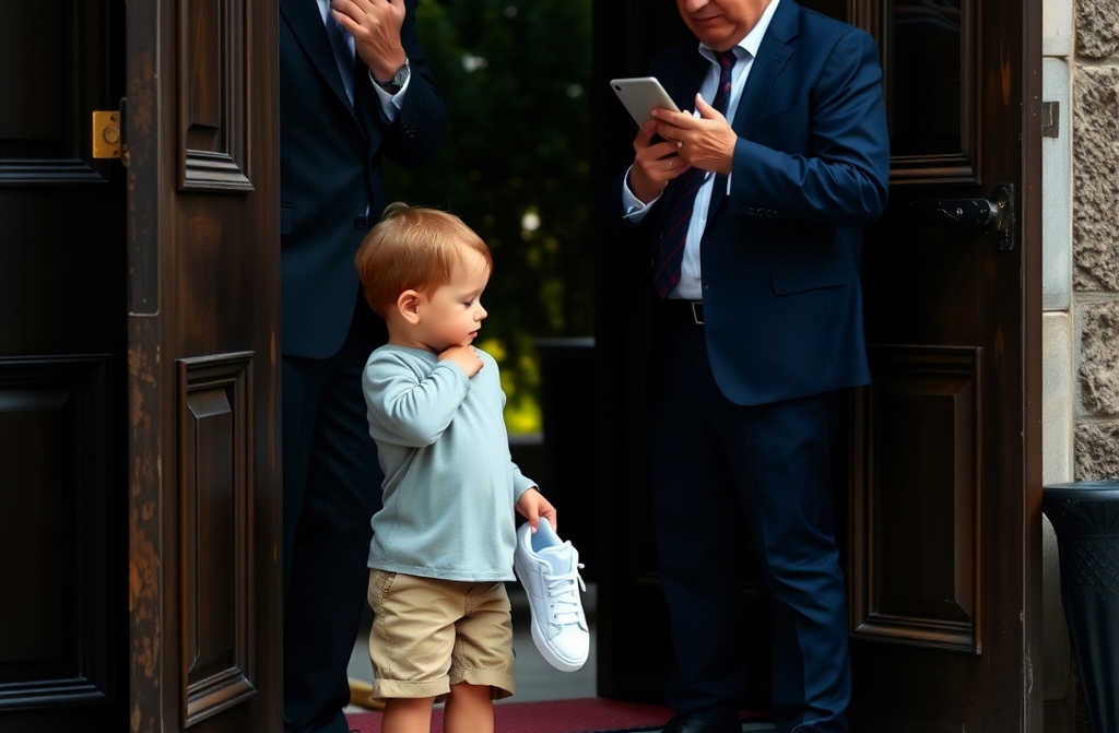 “Senhor”, disse o rapaz, a voz firme apesar da tensão nos seus ombros, “o seu filho deu-me estes na escola, mas a minha mãe disse que não posso ficar com eles.”