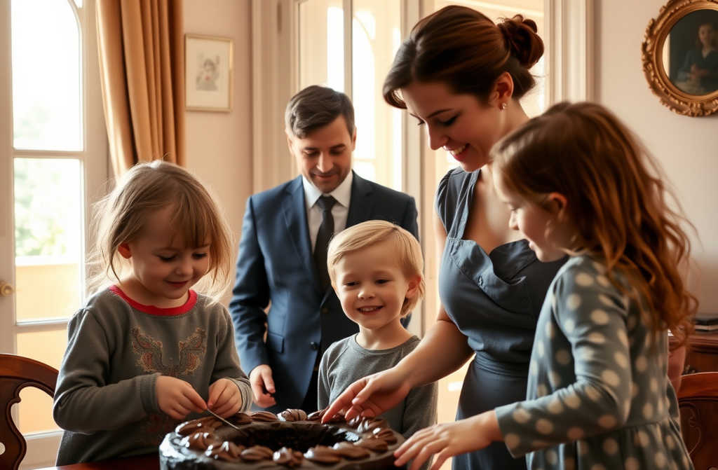A Leonor ria-se com eles, limpou a nata da bochecha da Beatriz, desarrumou o cabelo do Gabriel, tratando-os como se fossem seus. O amor enchia a sala, puro e genuíno.