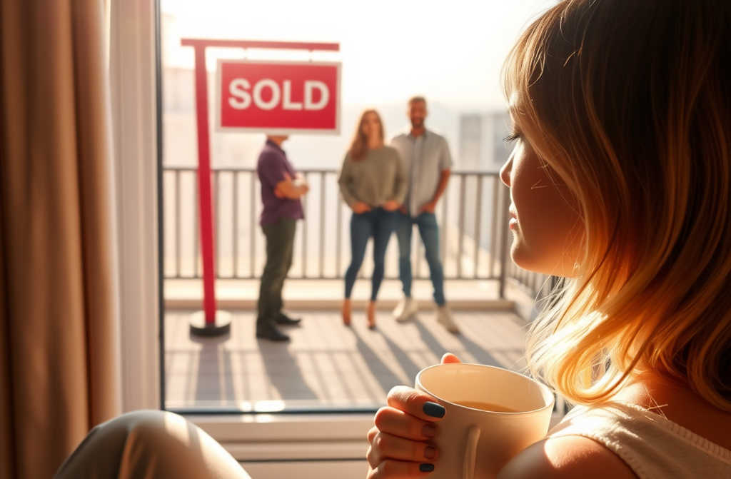 Sai da entrada e marcha até ao passeio do vizinho, apontando para a placa de “VENDIDO” como se fosse um erro que alguém precisa de corrigir. Vejo-a a falar depressa, as mãos a cortar o ar, a performance de uma mulher que sempre acreditou que o volume equivale a autoridade.