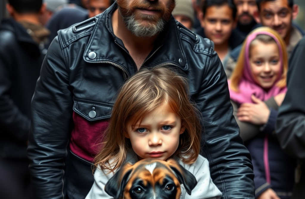 Um motociclista ajoelha-se para proteger uma menina perdida e o seu cão a tremer num beco cheio de gente, desencadeando uma série de eventos que parecem simples à superfície mas escondem uma verdade tão dolorosa que conseguiu calar uma rua inteira.