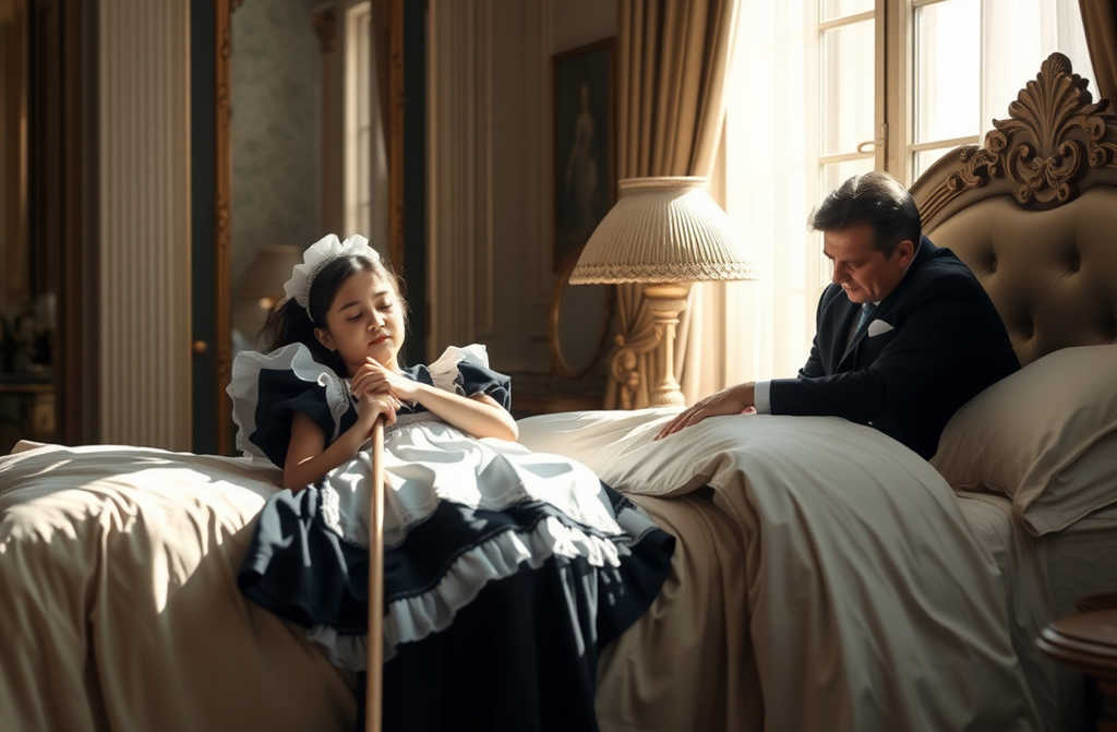 “Senhor, por favor, me perdoe”, chorou, ajoelhando-se ao lado da cama. As mãos agarravam o esfregão como se fosse sua salvação. “Não foi minha intenção. Juro. Passei a noite toda acordada. Eu—eu devo ter desmaiado. Por favor, não me demita.”