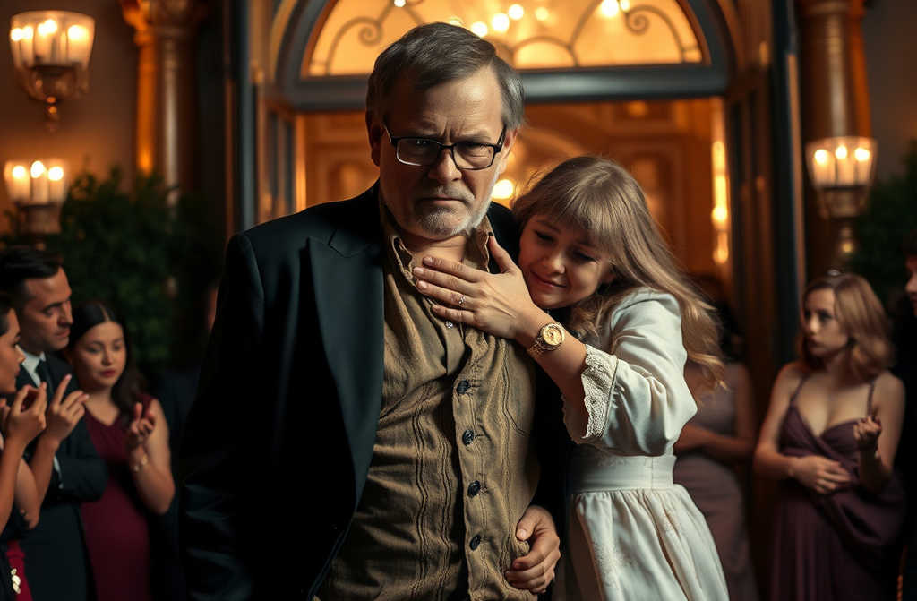 Entonces oyes la voz que corta la noche como un sirena. “¡Dejadlo ir!” Una mujer corre desde la entrada, apartando invitados que se apartan como si ardiera. No va vestida como ellos—ni etiquetas de diseñador ni joyas que griten. Lleva el pelo recogido con prisas, y sus ojos arden como solo puede arder el amor. Lucía, tu hija menor, la que tratan como una vergüenza porque eligió un hospital público antes que la medicina privada. Te alcanza, interpone su cuerpo entre tú y los guardias, y te mira sin pestañear. No ve la manta o la suciedad o la ropa rota—ve tus ojos. Y algo en su expresión se quiebra, porque reconoce al hombre que la cargó a hombros, al que aplaudió demasiado fuerte en su graduación, al que siempre estaba “ocupado” pero nunca ausente en su memoria. “Papá”, susurra, y suena como una puerta que se abre.