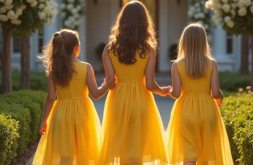 El coche negro se detuvo. El chófer bajó y abrió la puerta con elegancia. Primero salieron tres niñas con vestidos amarillos a juego, cogidas de la mano, sus rizos bailando al caminar por la alfombra roja. Tras ellas emergió Carmen, con un elegante vestido verde esmeralda. Su presencia era imponente y serena, su belleza relucía y su fortaleza era indiscutible.