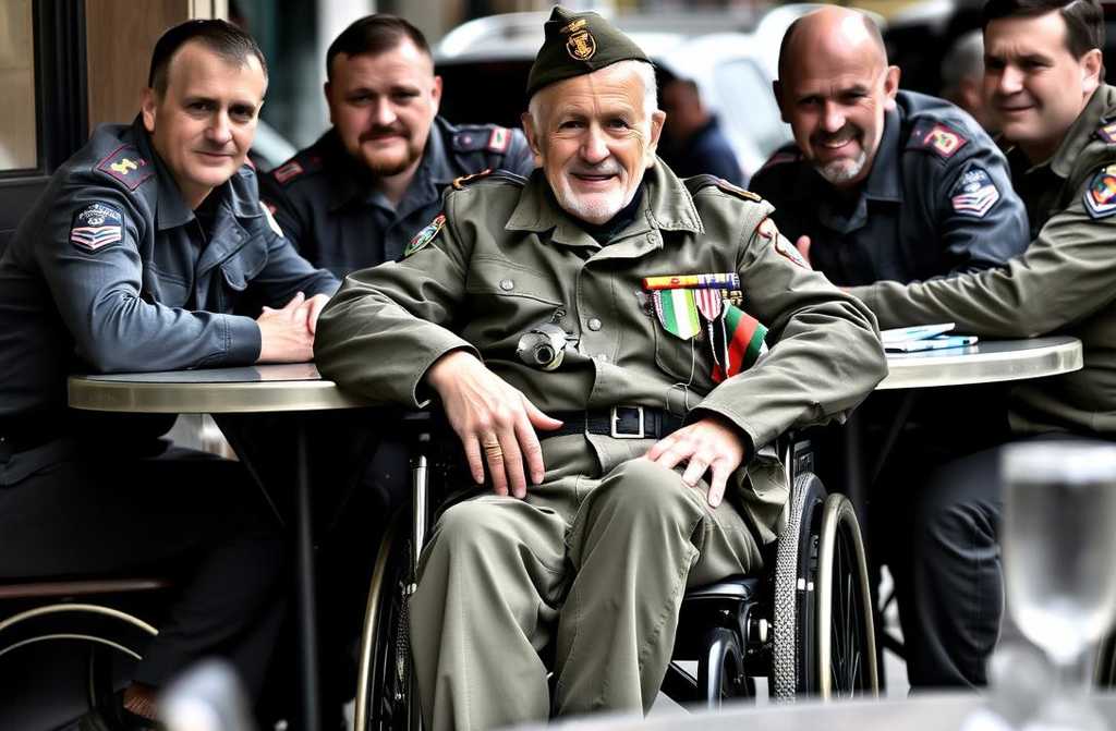 «Comandante», dijo, con voz urgente. «Estoy en La Cafetería Azul, en la calle Mayor. Hay unos tipos acosando a una veterana discapacitada». Hizo una pausa. «Es una de los vuestros. Lleva el Tridente en su silla, uno auténtico». Escuchó un momento. «Sí, señor. Ahora mismo».