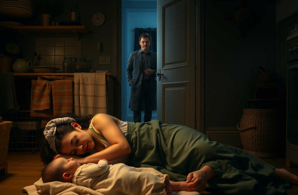 No entanto, eis a verdade: a sua empregada doméstica a dormir no chão de madeira para que os seus filhos não estivessem sozinhos.