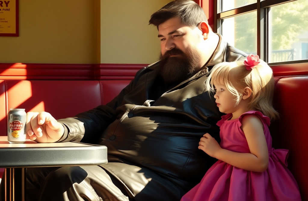 Ocupo mucho espacio, lo sé. Mido uno noventa y peso ciento veinte kilos de barba y tatuajes, con una chaqueta de cuero que grita “aléjate” a la gente decente. Mi casco estaba sobre la mesa, lleno de pegatinas de todos los garitos entre aquí y Murcia. No buscaba problemas. Solo buscaba cafeína.